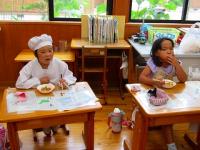 21日(木)5時間目、6年生外国語科の研究授業を行いました。「グループでオリジナルカレーを作ろう」をめあてに、3人グループになって食材や栄養素について英会話を楽しみました。この日は、大阪樟蔭女子大学教授とオンラインで結び、指導助言をいただきました。今後も伝え合うことの楽しさや分かる喜びを味わうことのできる授業展開を目指して研修に励んでいきます。