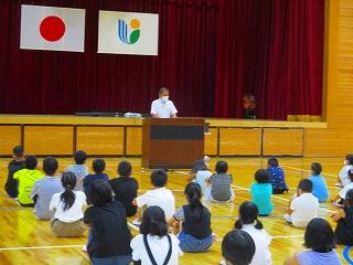 28日(木)小田タイムに外国語集会を行いました。まず始めに、”London Bridge”の歌遊びを楽しみました。次に”What's this?”の表現を用いて、クイズ大会を行いました。①ブラックボックスクイズ、②シルエットクイズ、③スリーヒントクイズを出題し、個人や班、全員で英語を使って答えました。子どもたちも英語に慣れ親しみ、意欲的に楽しく活動していました。